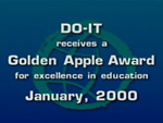 DO-IT Receives a Golden Apple AwardDO-IT Scholars are seen in action and DO-IT Director, Sheryl Burgstahler, accepts the Golden Apple Award.